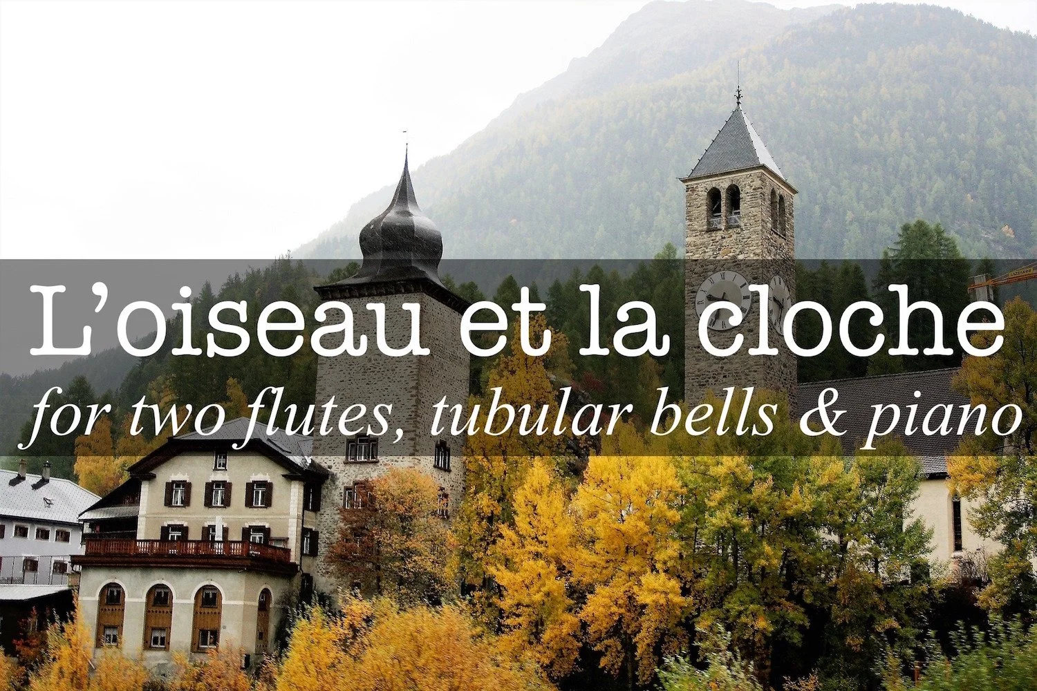 L’oiseau et la cloche for two flutes, tubular bells & piano